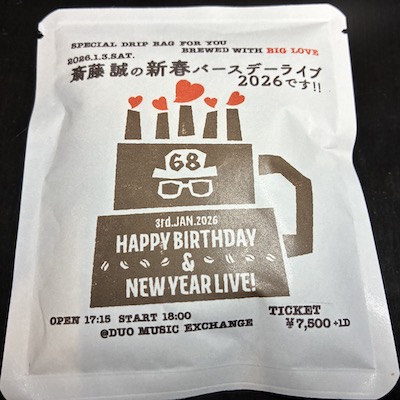 正月3日のバースデーライブ、ぴあとローソンが"予定枚数終了"で、今はイープラスだけでゲットできるんだなと思っていたら、会場のdmx webでも買えるんですね。失礼しました。今日知りました。非常に楽しみな2026年初ライブですが、その前に今週末、いよいよ「JOURNEY WITH TIGER」が完結します。明後日20日が名古屋SPADE BOX、そして21日に横浜サムズアップ。7月に始まったJOURNEYのファイナル公演にご期待ください!いやしかし、もうクリスマスじゃないの!こりゃ楽しくなりそうだ!というわけで明後日の「MAKOTONE~It's a beautiful day~」は録音ですが、内容たっぷり。なんてったって明後日20日はFMヨコハマの40周年記念日!僕が80年代に担当した「グレイスランドへようこそ」や、2000年代の「Cafe LALALU」の話なんかもしちゃおう。題して『斎藤誠のエフヨコと横浜の思い出。今年のヒット曲にのせて語ります!』。FMヨコハマで20日(土)17時16分頃からです。是非皆さん聴いて下さい!